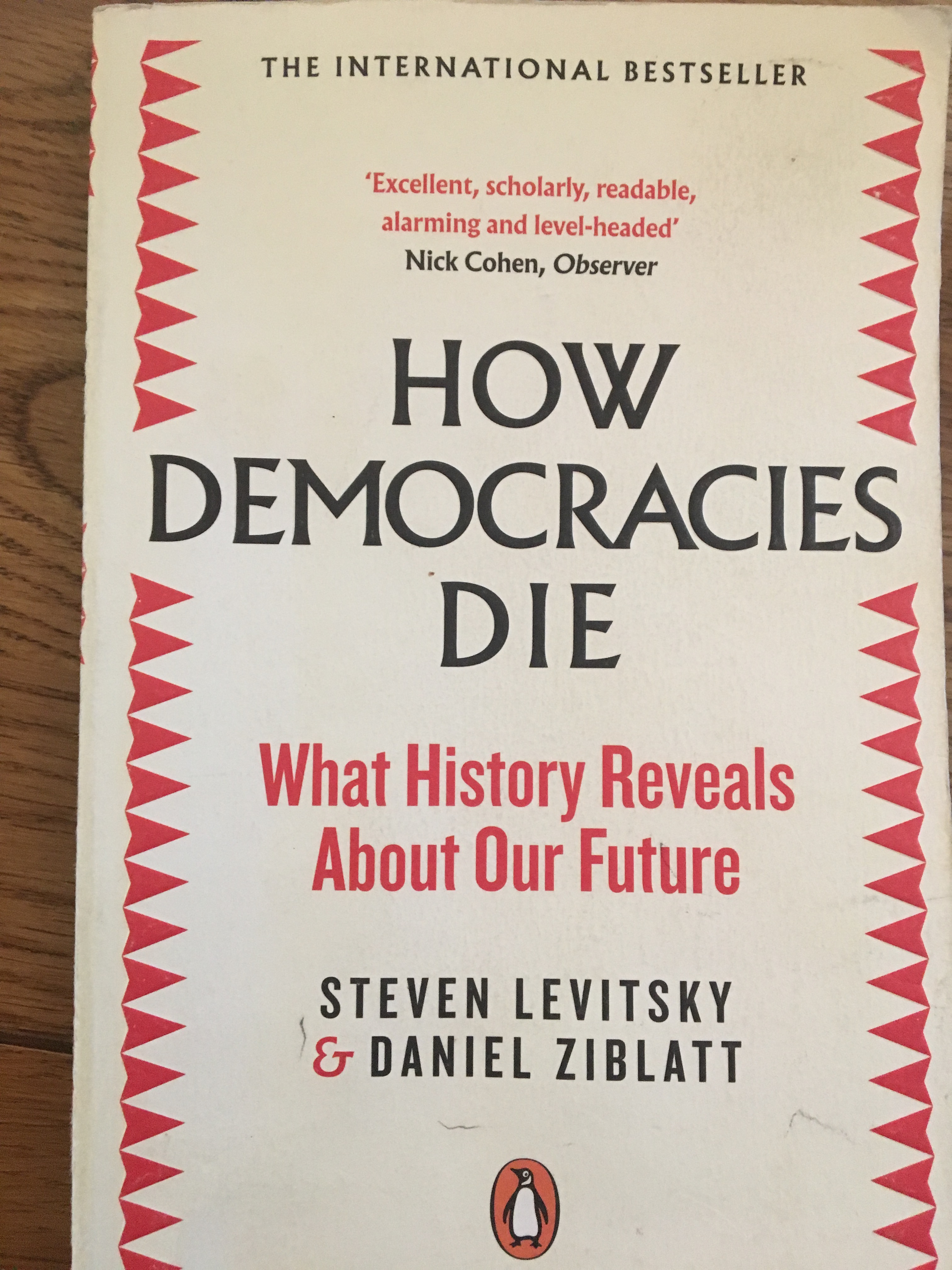 A more insidious, but no less effective and dangerous, mechanism they identify is when a democracy is destroyed from within. Destroyed by leaders who have come to power through the very democratic process which they ultimately debase and destroy. A variety of examples are drawn upon to illustrate their case. In some instances it was clear from early on the individual concerned had no respect for, or interest in, democracy, others drifted to a more authoritarian position in a tit for tat escalation of power plays with opposition parties.