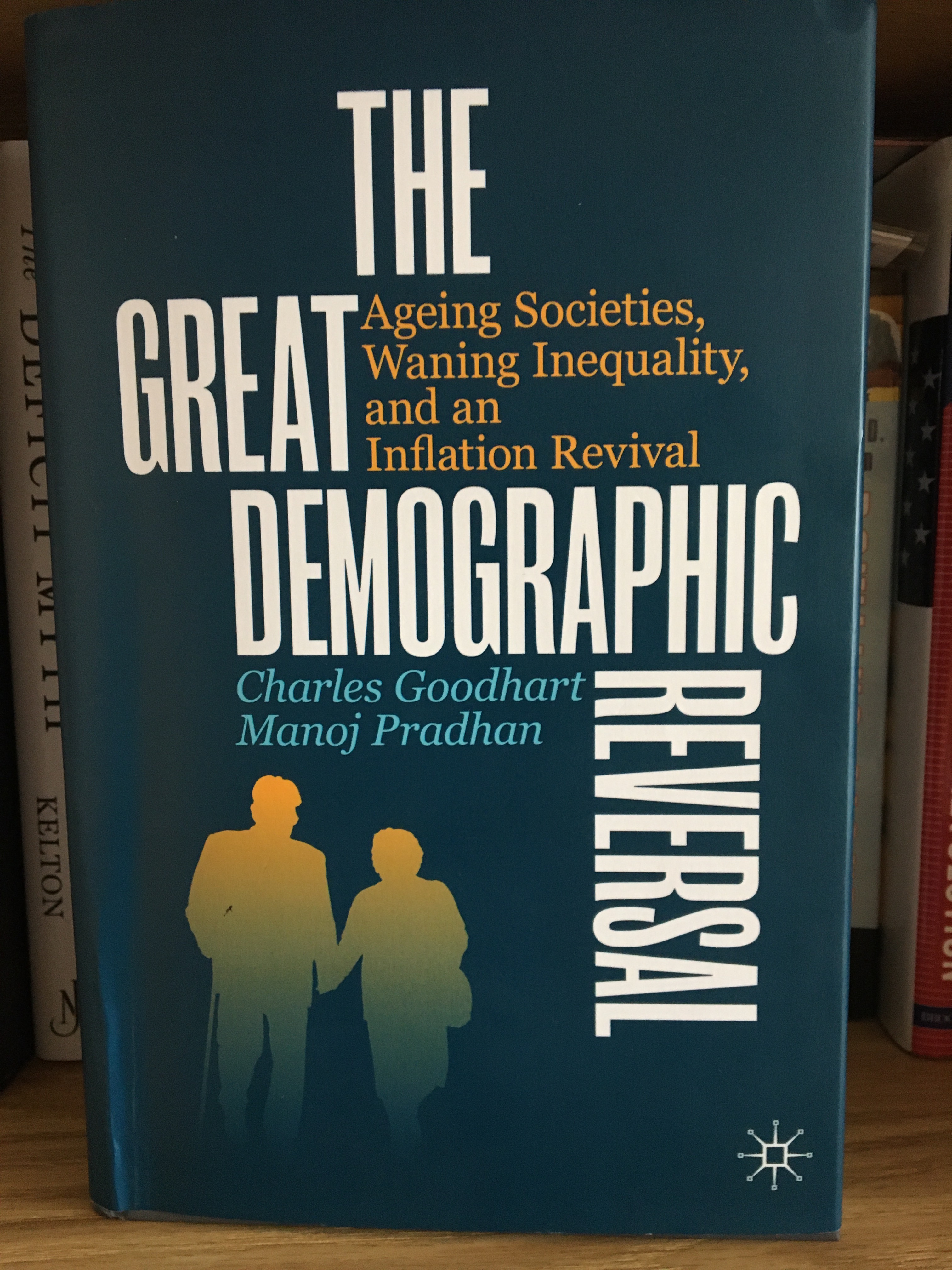 “The Great Demographic Reversal” is an immensely stimulating book by Goodhart and Pradham which amongst other things predicts a shift in the balance of power between capital and labour, reductions in levels of intra-state inequality and, worryingly for highly indebted nations, the return of higher nominal interest rates and higher inflation.